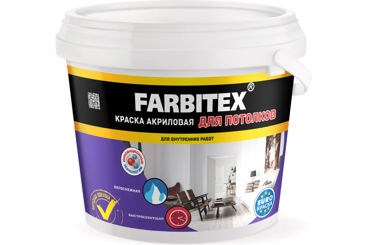 Краска Farbitex акриловая для потолков 6кг