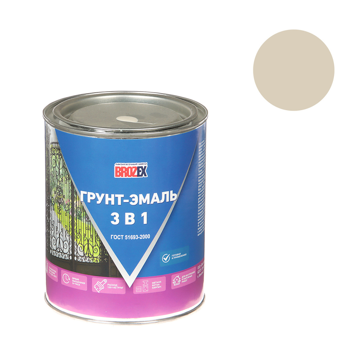 Грунт-эмаль по ржавчине серая 1кг BROZEX