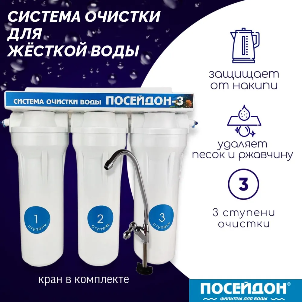 Питьевая система 3-х ступ. для жёсткой воды Посейдон-3