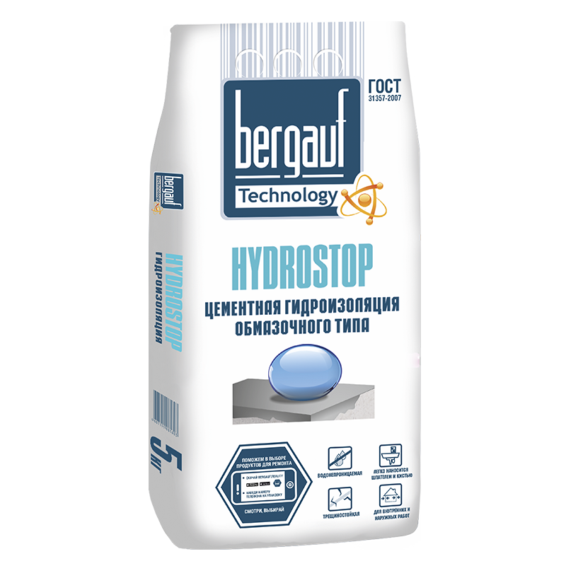 Гидроизоляция цементная обмазочного типа Бергауф 5кг Гидростоп