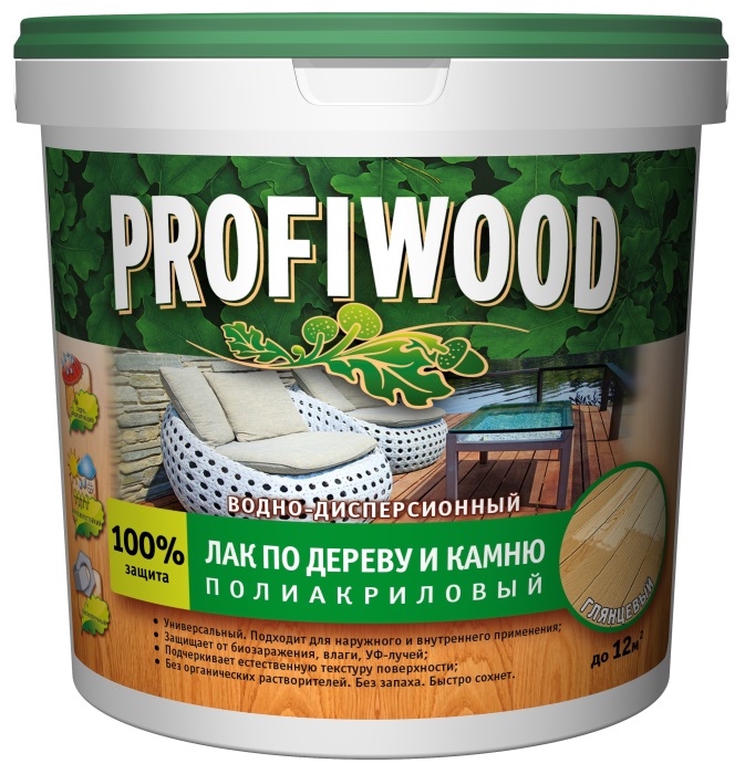 Лак в/д по дереву и камню PROFIWOOD глянц. 0,9кг
