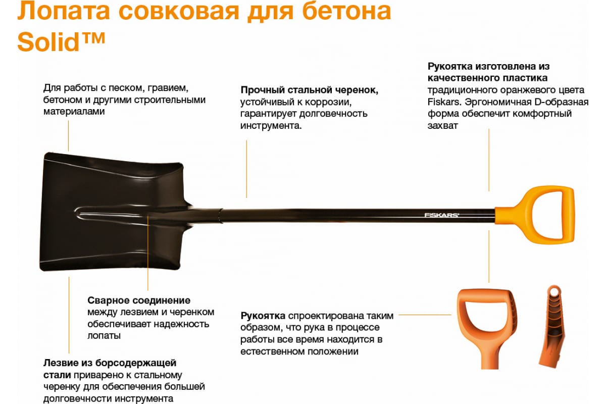 Лопата для бетона Solid FISKARS