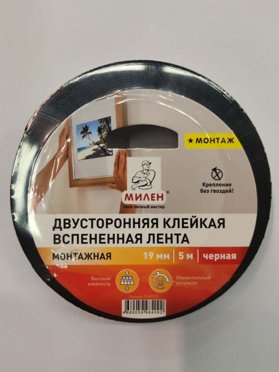 Скотч 2-сторон 19мм х 5м "МИЛЕН" черный TFM912T