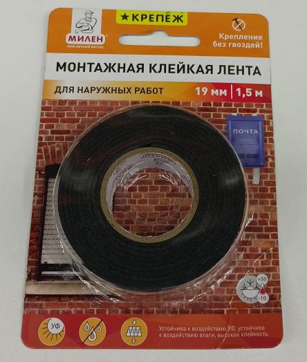 Скотч 2-сторон.19мм*1,5м МИЛЕН на вспен. осн. для наруж работ
