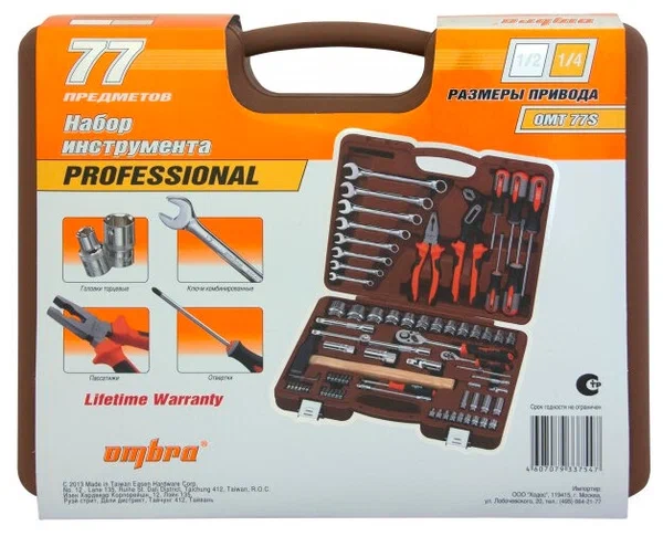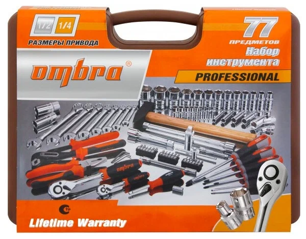 Набор инструмента 1/2", 1/4"DR, 77 предмета ОМТ77S ОМВRA