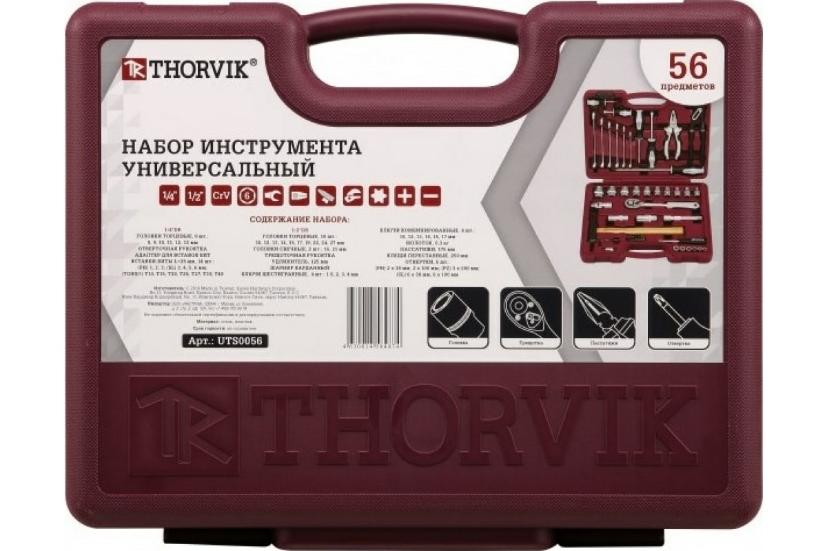 Набор инструмента 1/4", 1/2"DR, 56 предметов UTS0056 Thorvik