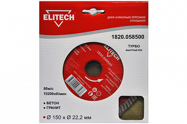 Диск алмазный 150x22мм д/бетона, гранита турбо Elitech