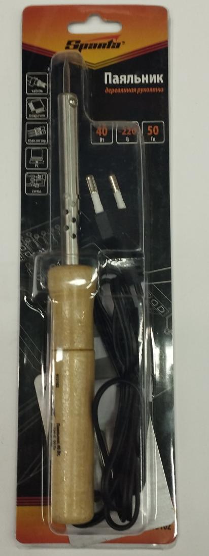 Электропаяльник 40 Вт 220В с деревянной ручкой SPARTA