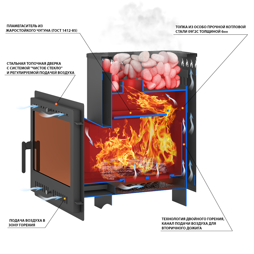 Печь Везувий Русичъ Антрацит 16 Панорама "М"