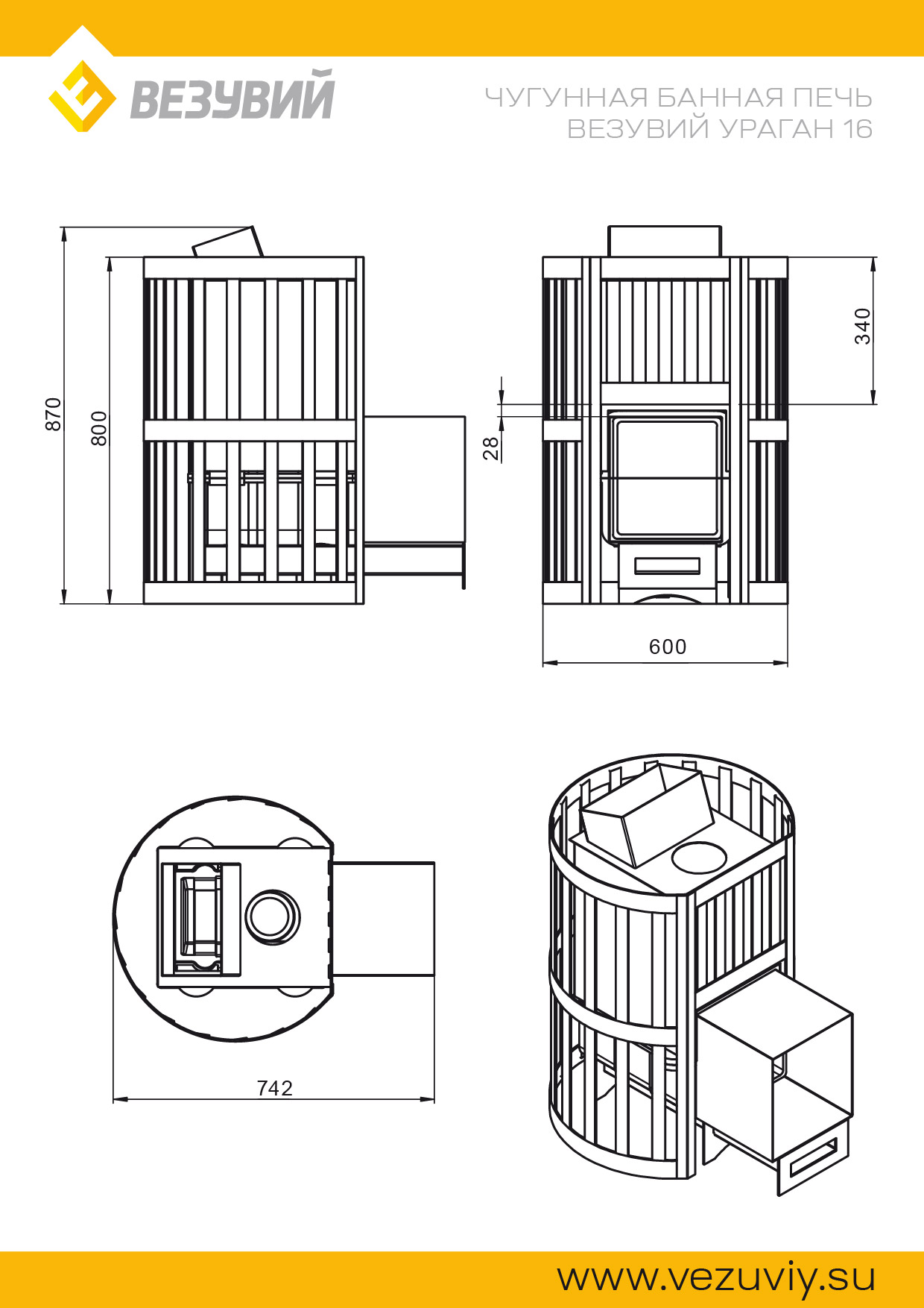 Печь Везувий Ураган Ковка 16 (224)