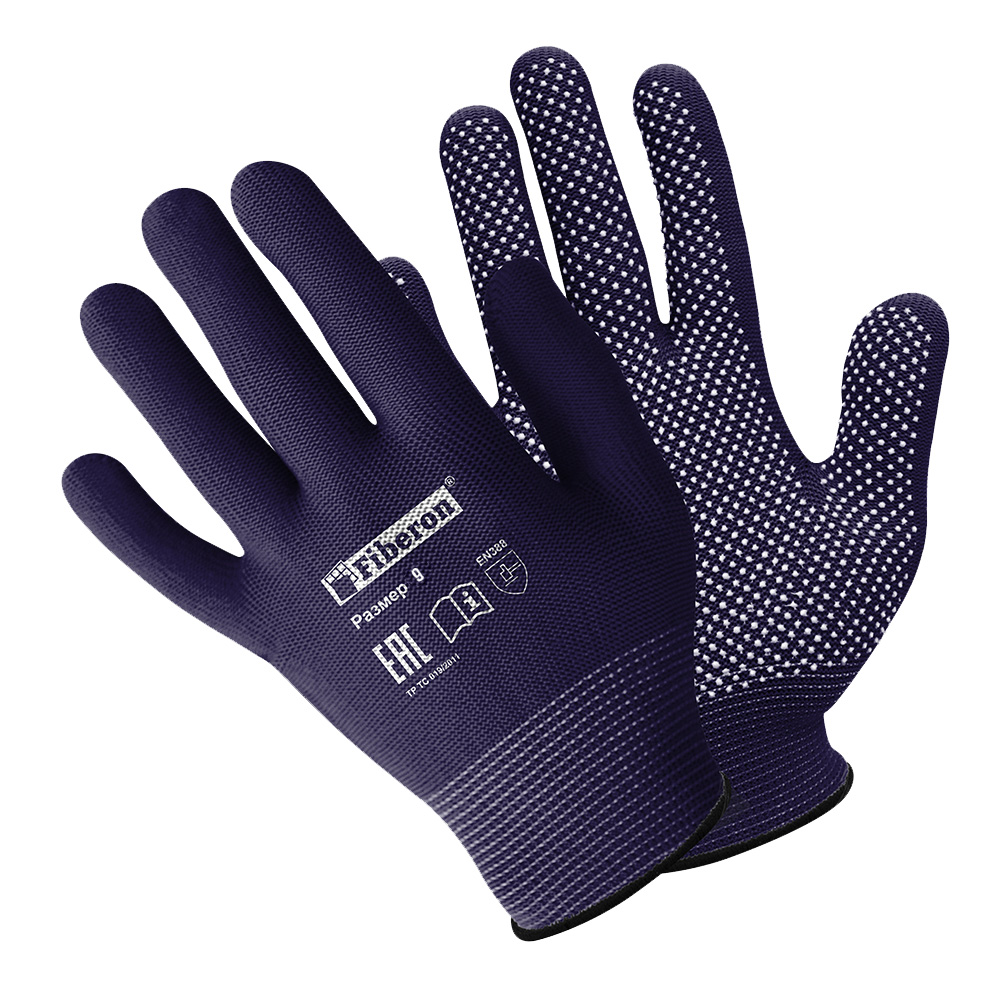 Перчатки полиэстер. ПВХ-точка Микроточка PR-PV541 чёрные Fiberon