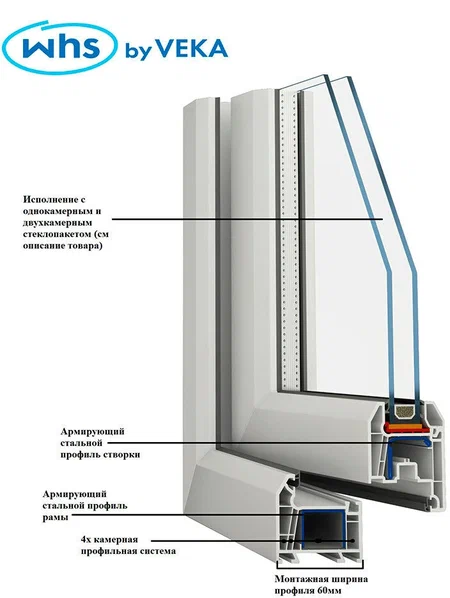 Окно 1-ств заполнение WHS-Halo профиль VEKA 600*560