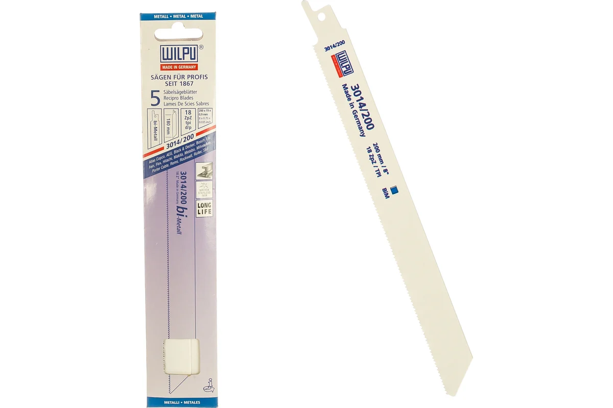 Полотно сабельн. по стали и нерж. от 1,5 до 2,5мм 3014/200 5шт. WILPU