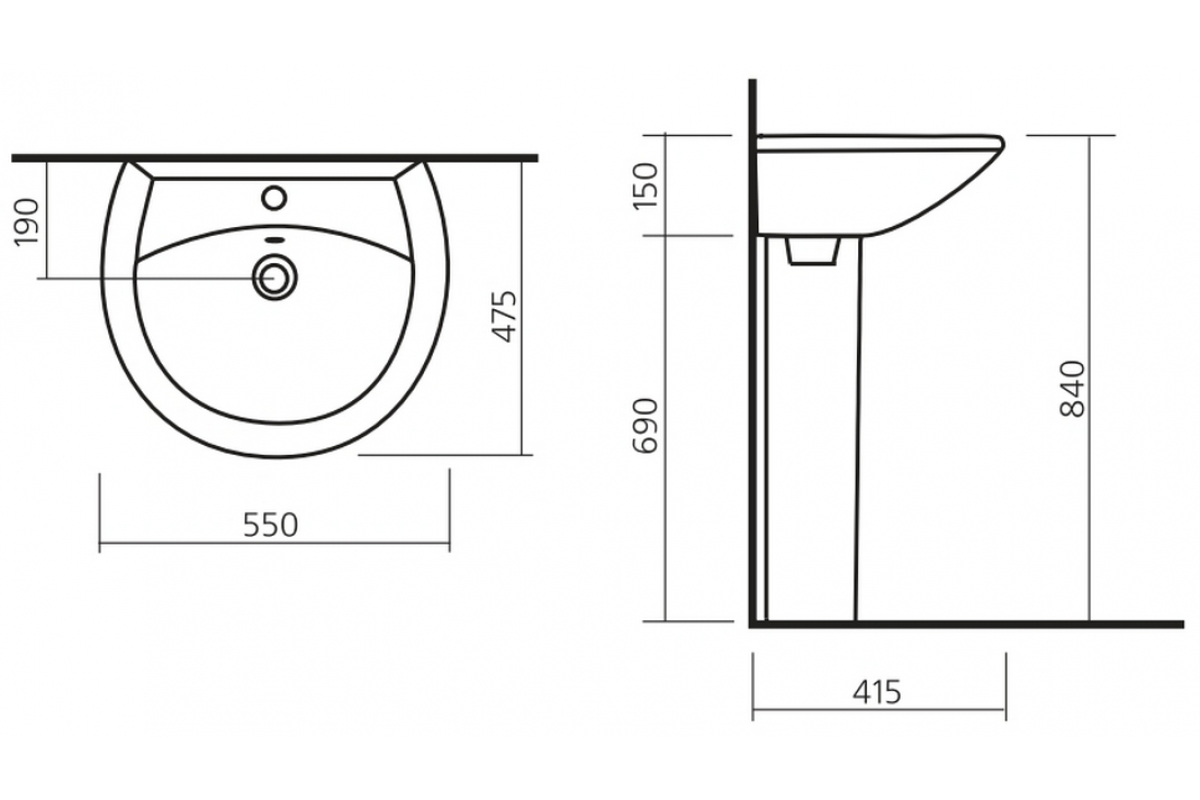 Умывальник с пьедесталом Аттика белый 550*475мм