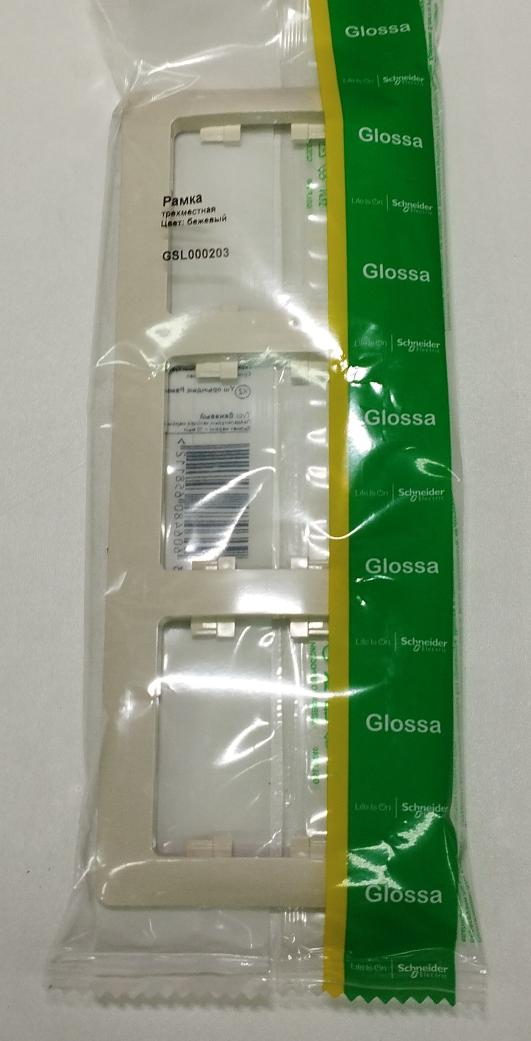 Рамка GSL000203 3-м беж. горизонт. Glossa
