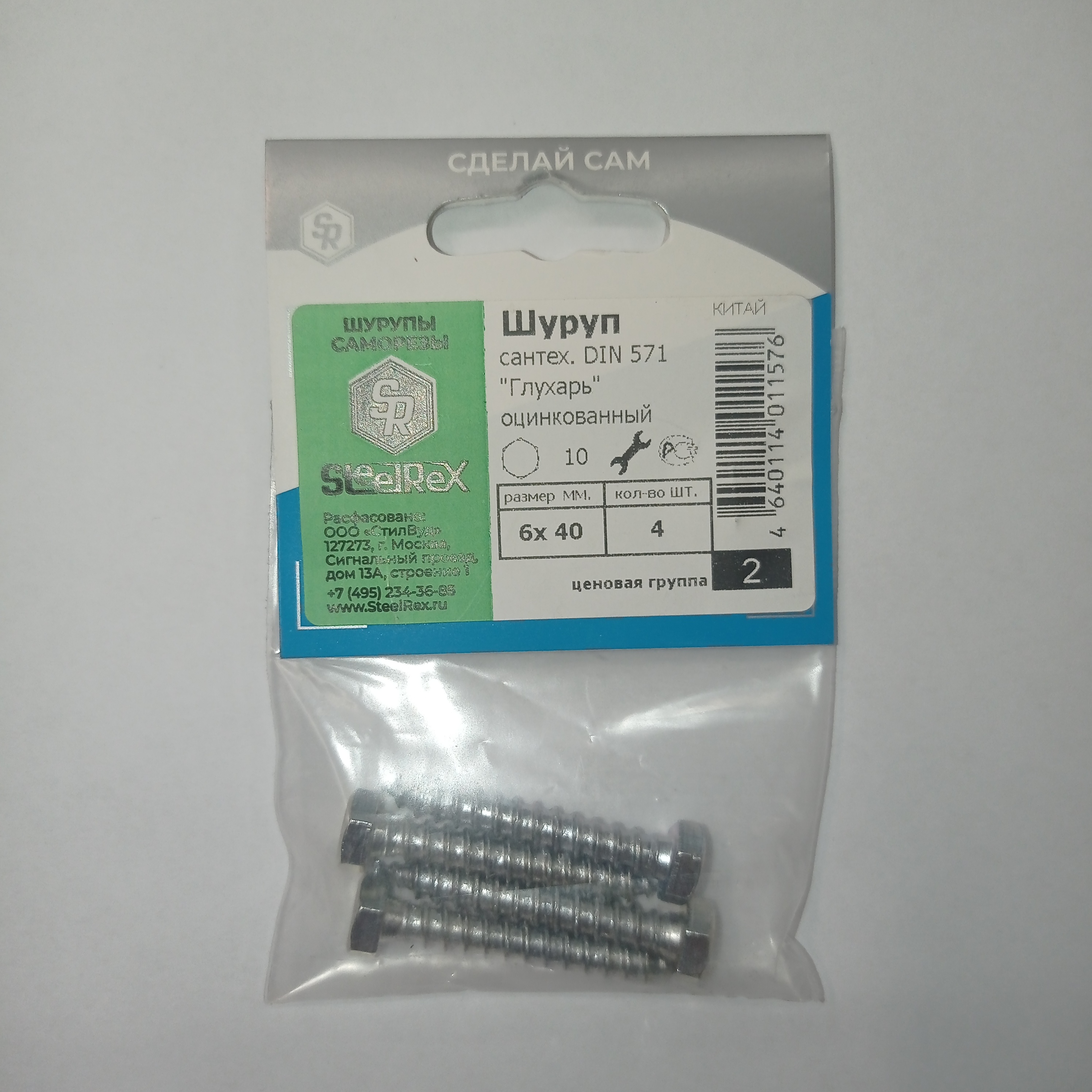 Шуруп с шестигр. головкой 6х40мм 4шт