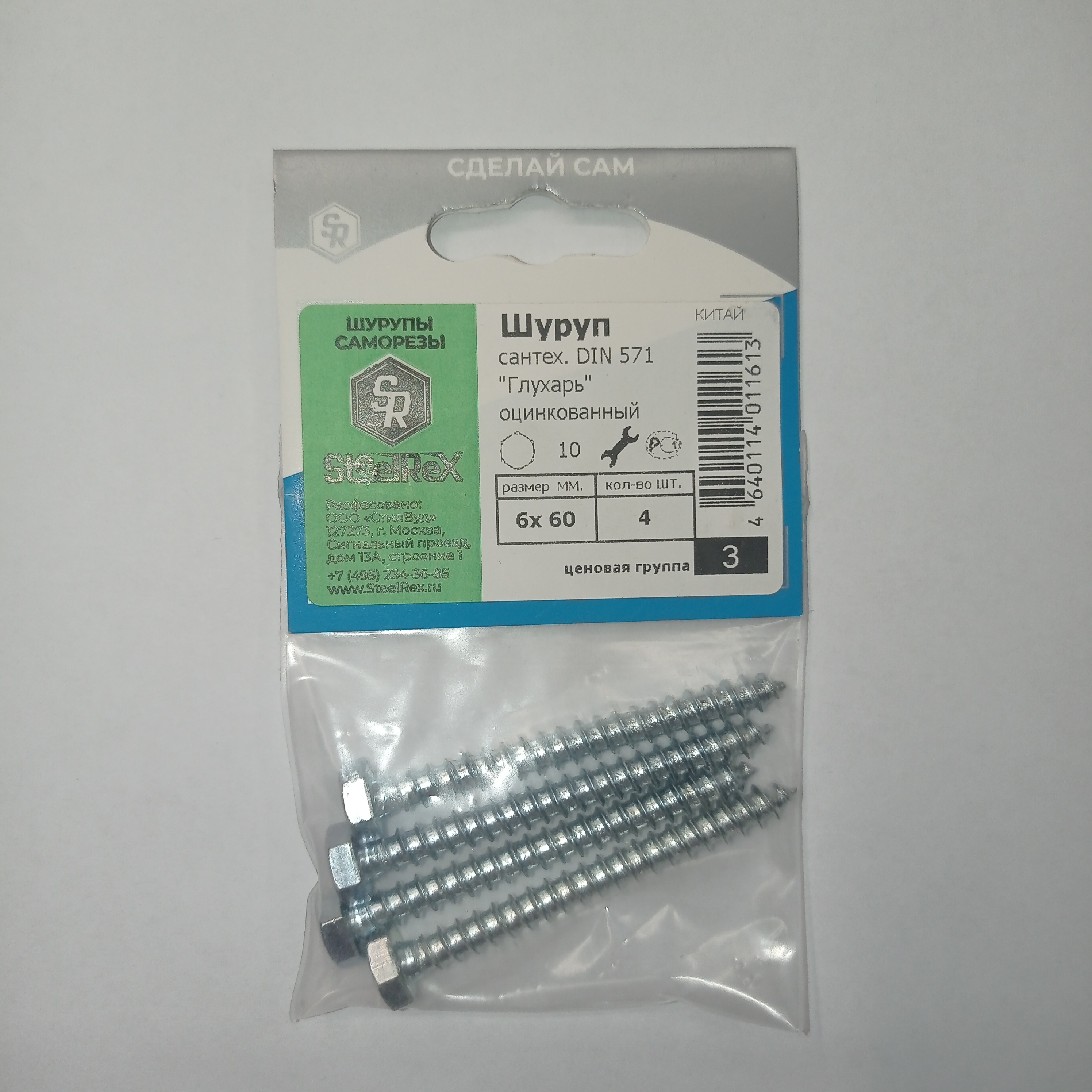 Шуруп с шестигр. головкой 6х60мм 4шт
