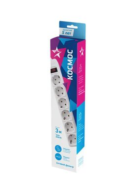 Фильтр сетевой 6мест/3м с заземл.бел 16А IP20 3.5 кВт Космос