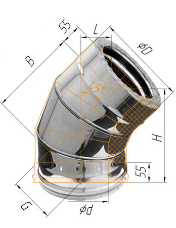 Колено утеплен.ф150/210 толщ-0,5 (сталь-430),угол 135 Феррум
