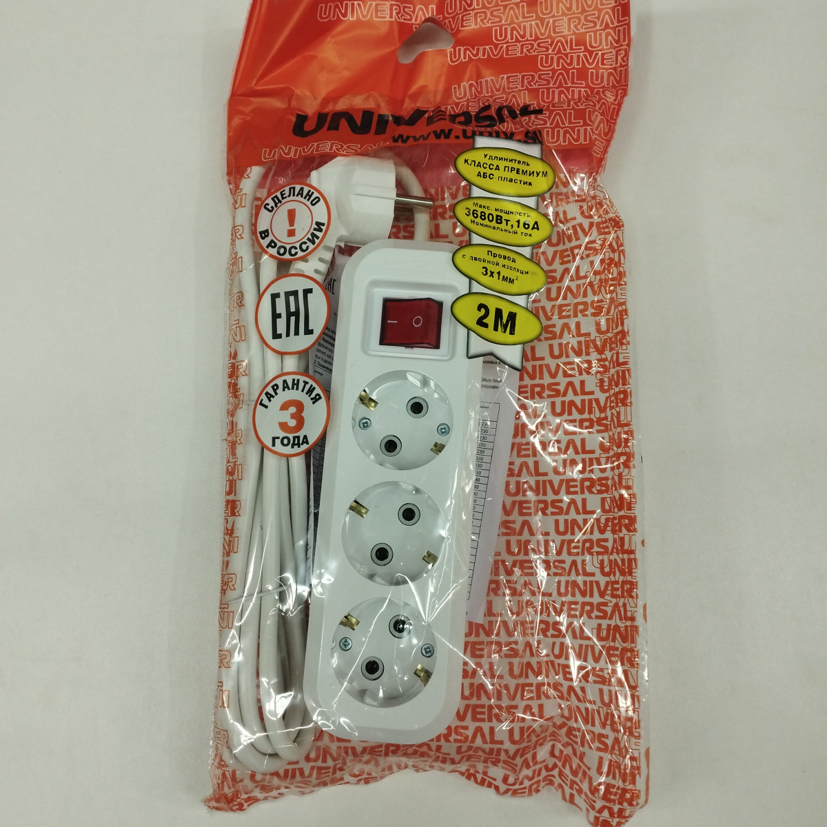 Удлинитель S-303 2м/3места индикат
