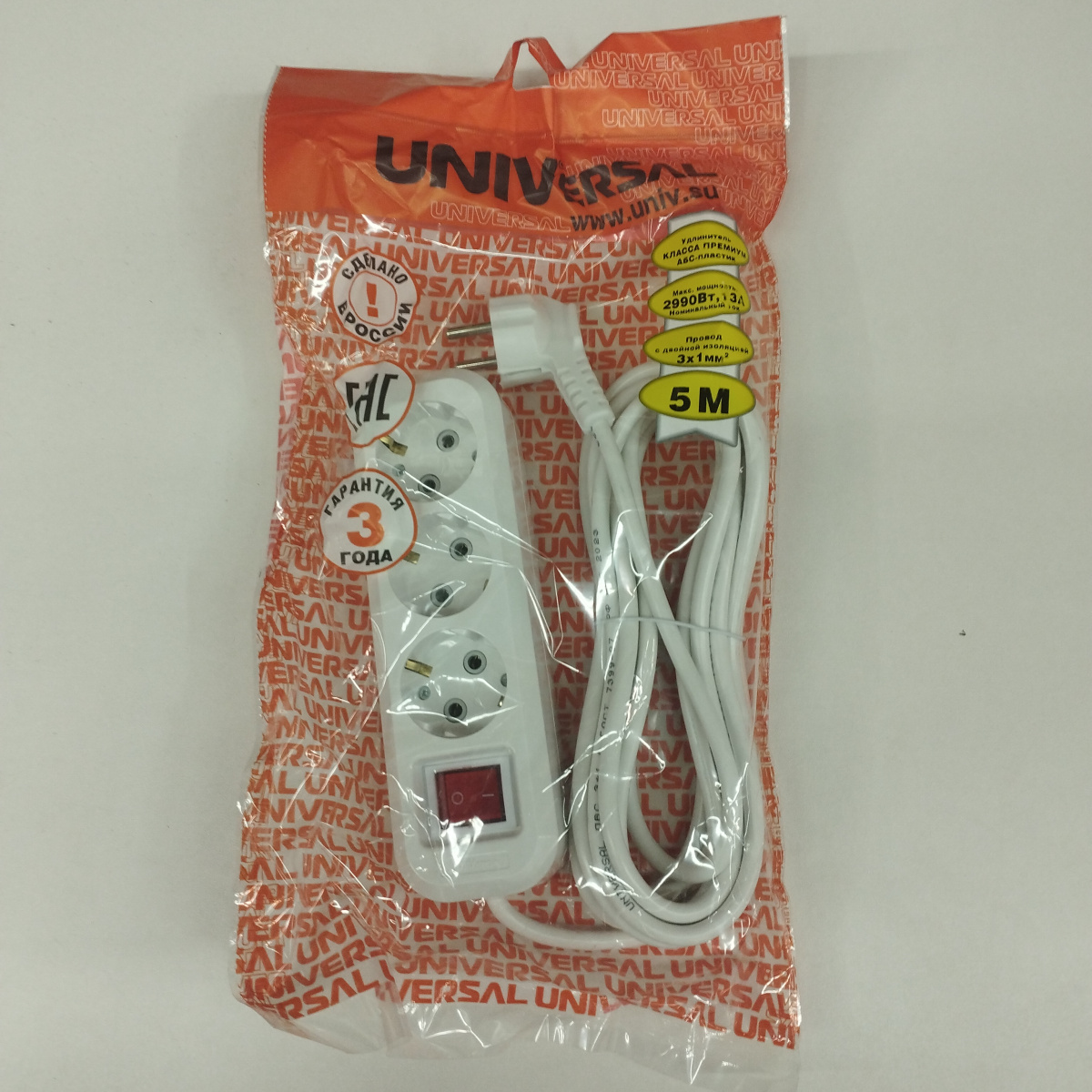 Удлинитель S-303 5м/3места индикат