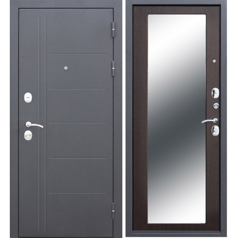 Дверь метал.Троя серебро MAXI зерк.Венге 10см 860 левая