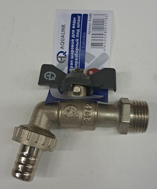 Кран шар водоразбор. баб. 1/2 со штуцером AQL